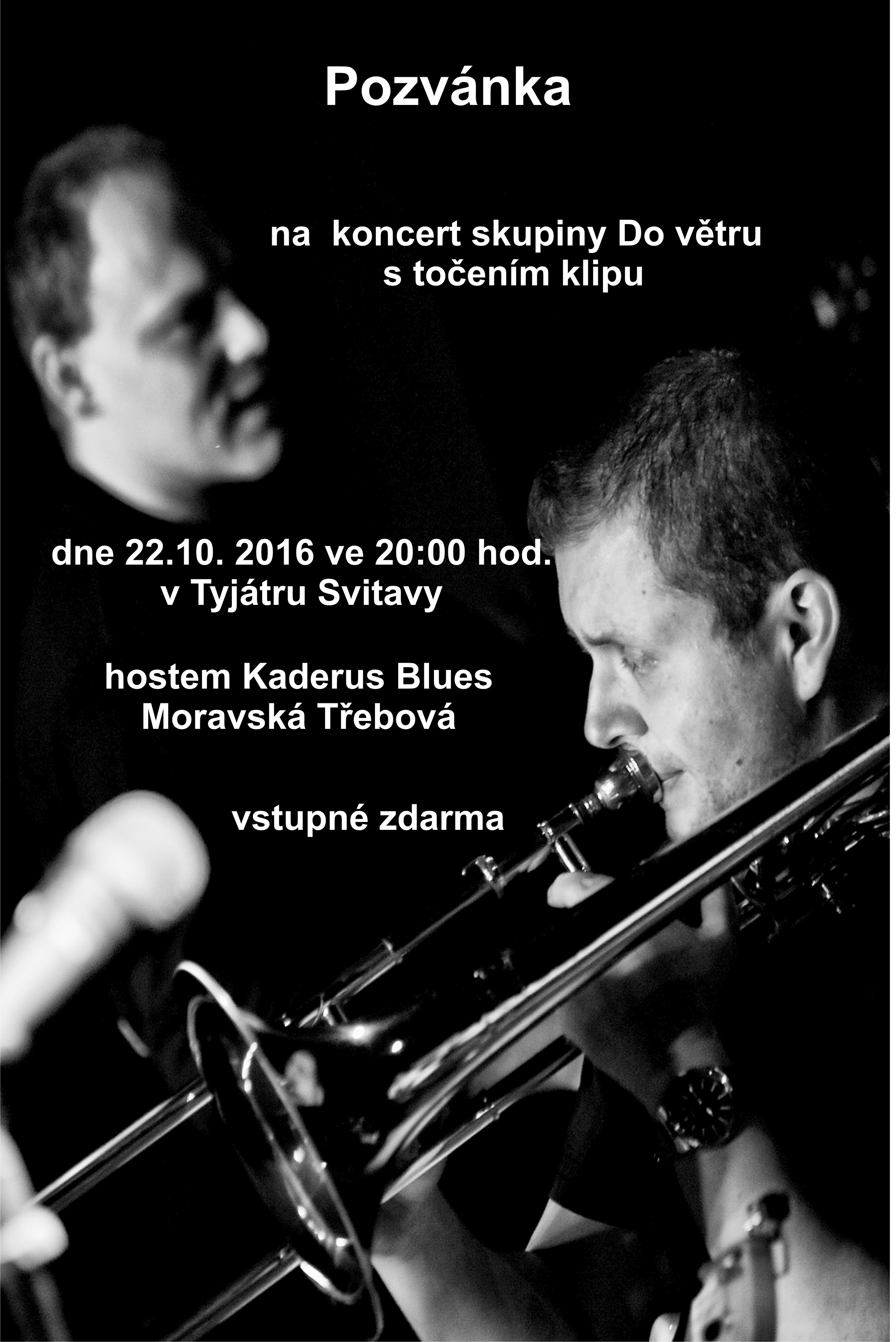 Koncert s točením videoklipu 0 komentářů Dne 22.10. 2016 ve 20:00 hodin v klubu Tyjátr Svitavy, hostem skupina Kaderus Blues Moravská Třebová, vstupné dobrovolné Vložit komentář Zrušit odpověď na komentář Vaše emailová adresa nebude zveřejněna. Vyžadované informace jsou označeny *Komentář Jméno * E-mail * Webová stránka
